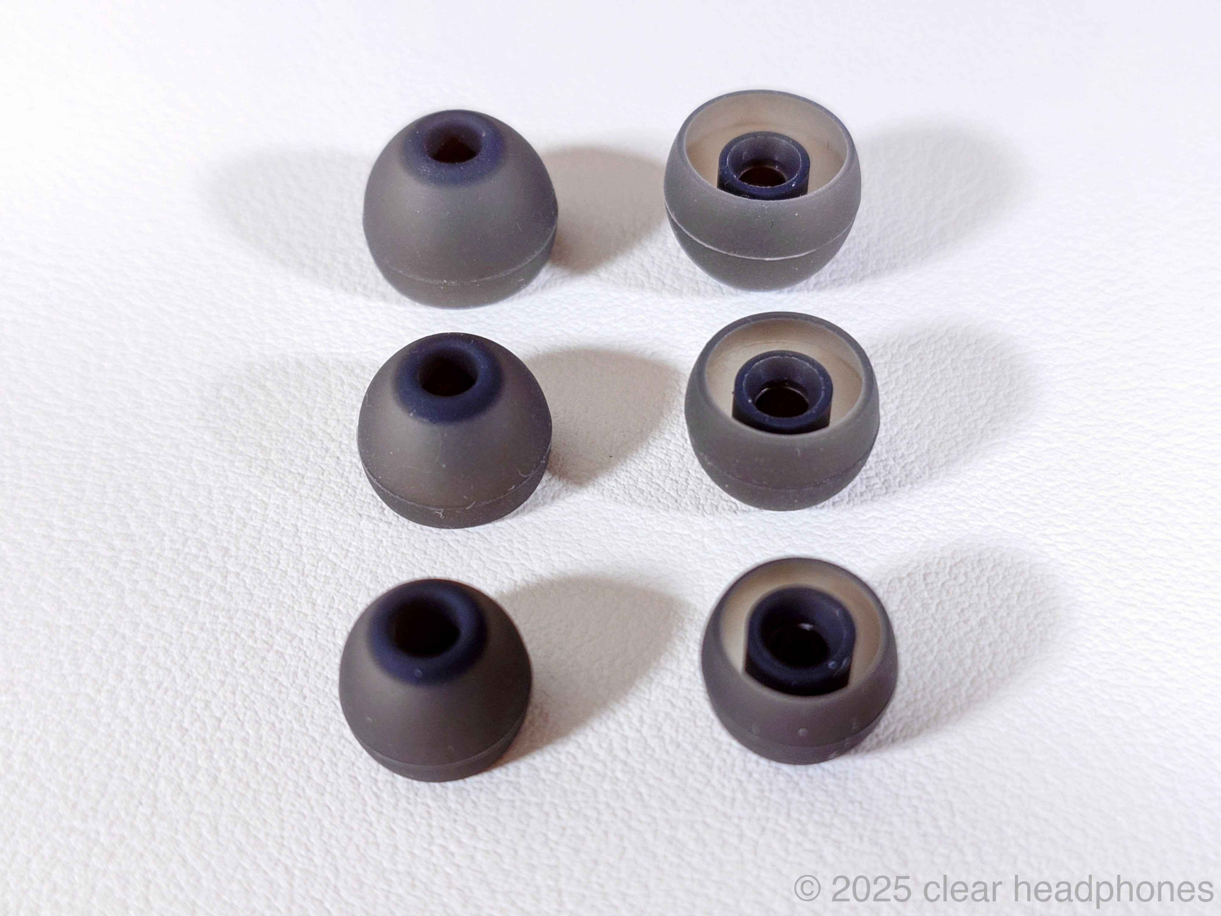 イヤーピースはシリコンタイプが3サイズ付属しています。軸は硬め、背は高めでサラサラとした質感です。他のピヤホンシリーズでも付属していたものと同じタイプですね。