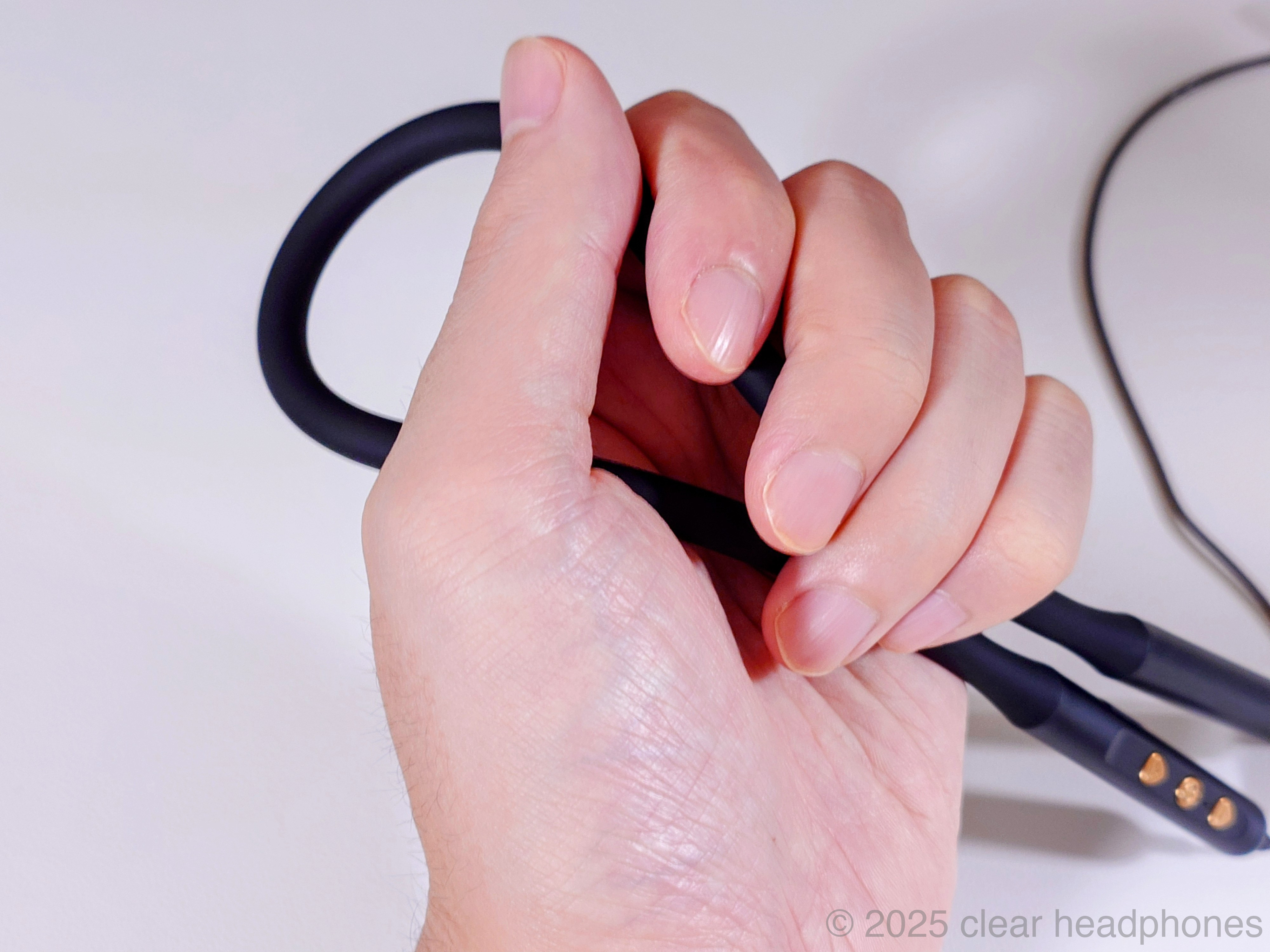 こちらが本体です。他のピヤホンシリーズ同様ブラックでシンプル&クールなデザインです。ネックバンド型で左右一体型です。ケーブル部分は細くしなやかです。弾力はありますが余計な癖はありません。
